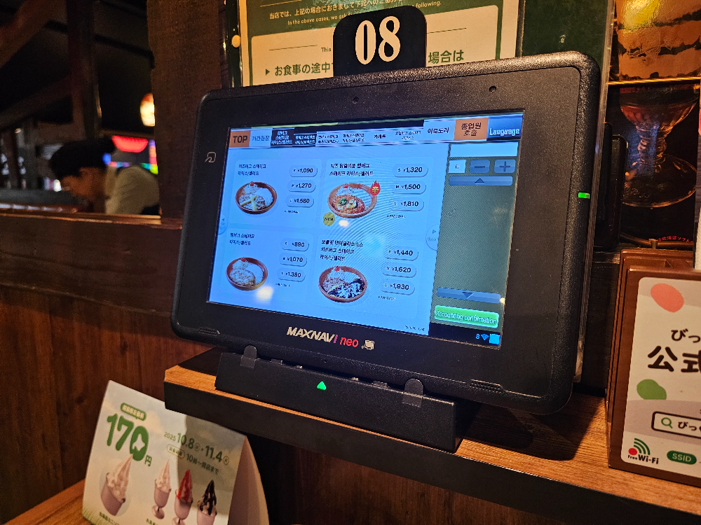 태블릿은 다행히도 한국어를 지원하기 때문에 일본어로 적힌 메뉴판에 당황했더라도 어려움없이 주문을 할 수 있습니다.