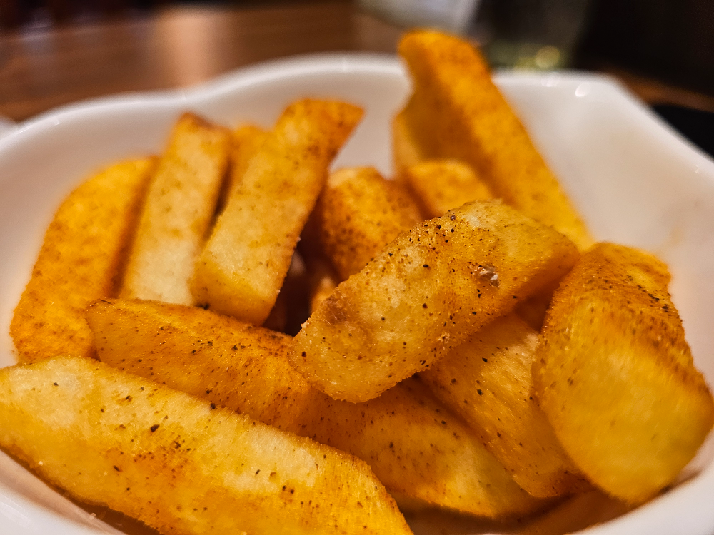 버거킹 감자튀김처럼 두툼한 감자튀김에 매콤한 칠리 시즈닝이 뿌려진 감자튀김이었습니다.