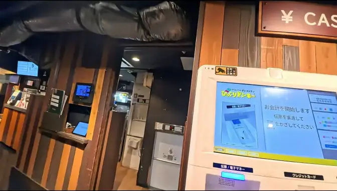 계산은 입구에 있는 키오스크에서 직접 진행해야 합니다.