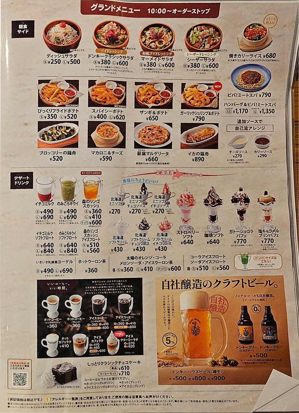 일본의 패밀리 레스토랑은 늦은 시간까지 영업하는 대신 심야시간 대에는 추가 요금을 받는다고 들었는데, 빗쿠리돈키도 심야 시간대에 추가요금을 받네요.
