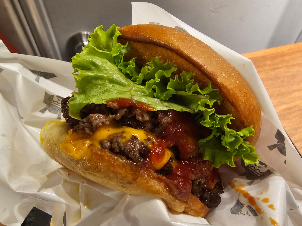 얇게 눌러서 구운 패티를 두 장 올려서, 겉은 바삭하고 안은 부드러운 식감을 즐길 수 있었는데 소고기 본연의 맛이 잘 살아있고, 간도 적당히 되어 있어서 짜지 않았습니다.