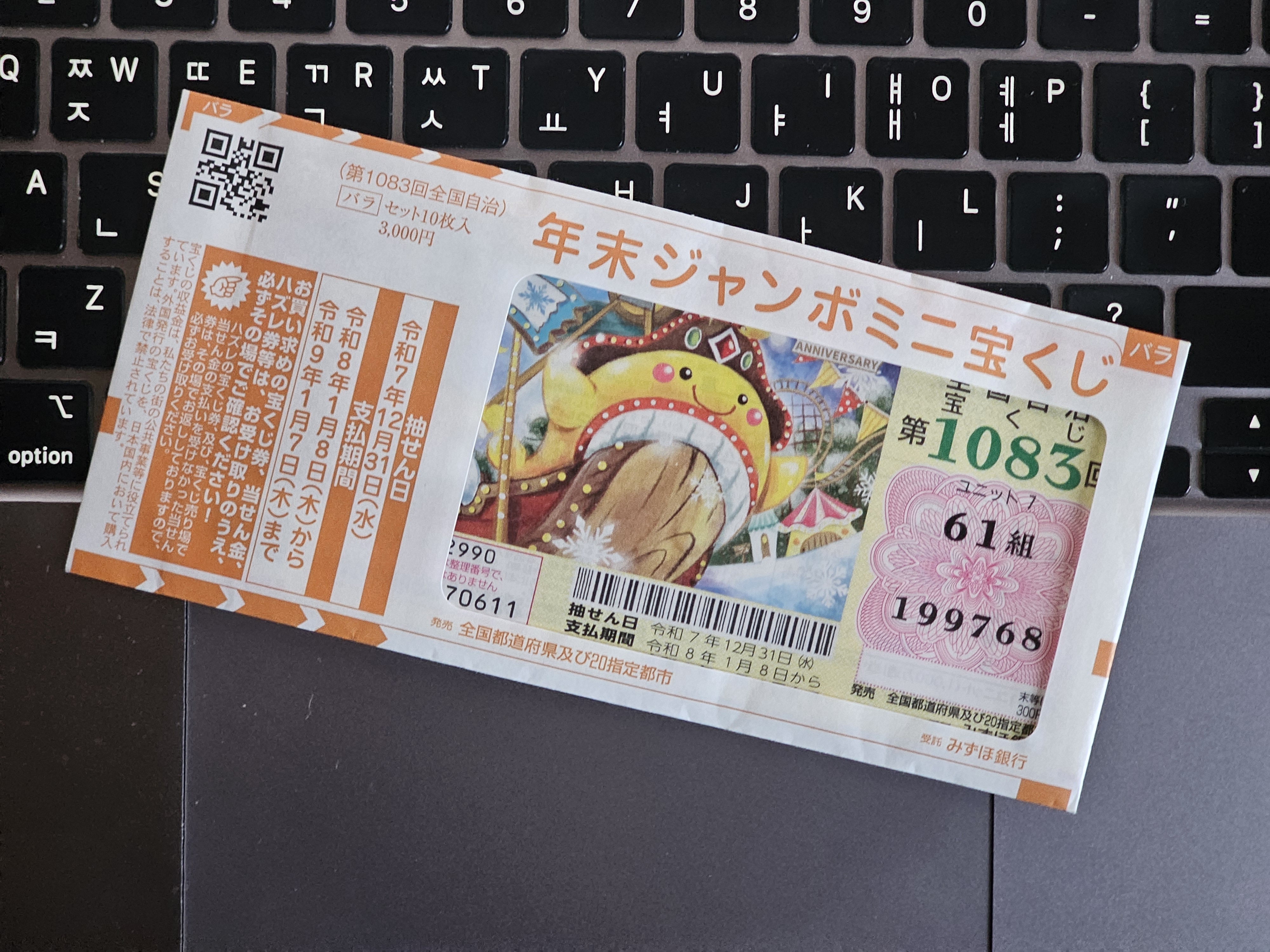 당첨 금액이 큰 점보 복권을 구입하고 싶었는데, 일본어를 모르고 복권 판매점에서 충분히 번역기를 돌려가면서 정보를 확인했어야 했는데 그러지 못 해서 어쩌다 보니 점보 미니 복권을 구입했습니다.