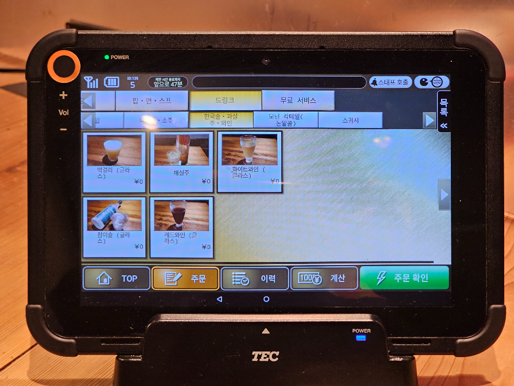 모든 주문을 태블릿으로 해야 하고, 직원이 직접 테이블로 가져다주는 시스템이었습니다.