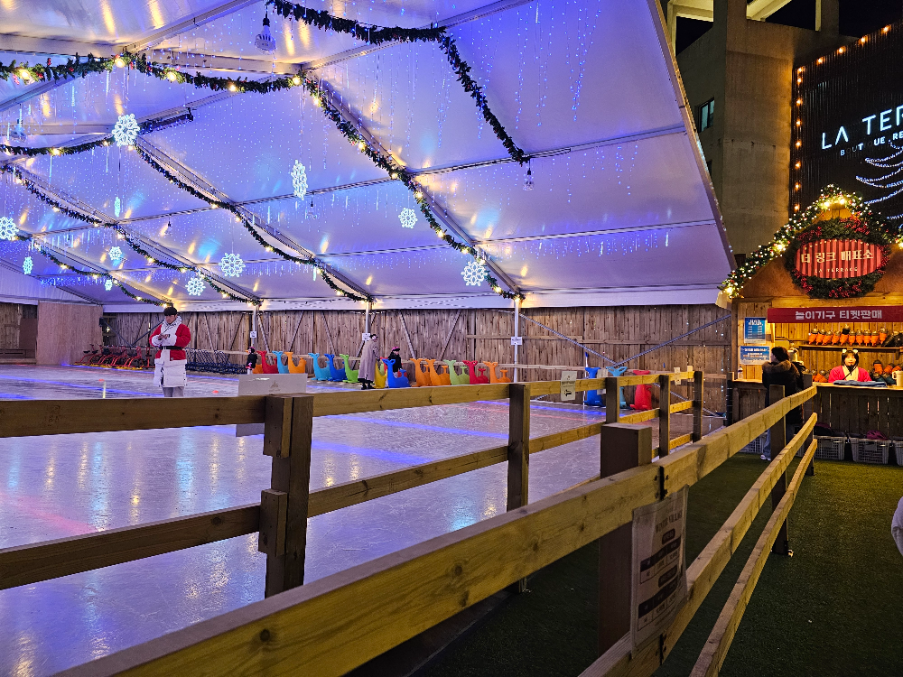 이런거 서울 무슨 광장에 설치되었다고 뉴스를 통해서만 봤지, 실제로는 이런 야외 아이스링크를 처음보는데 무척 신기했습니다.