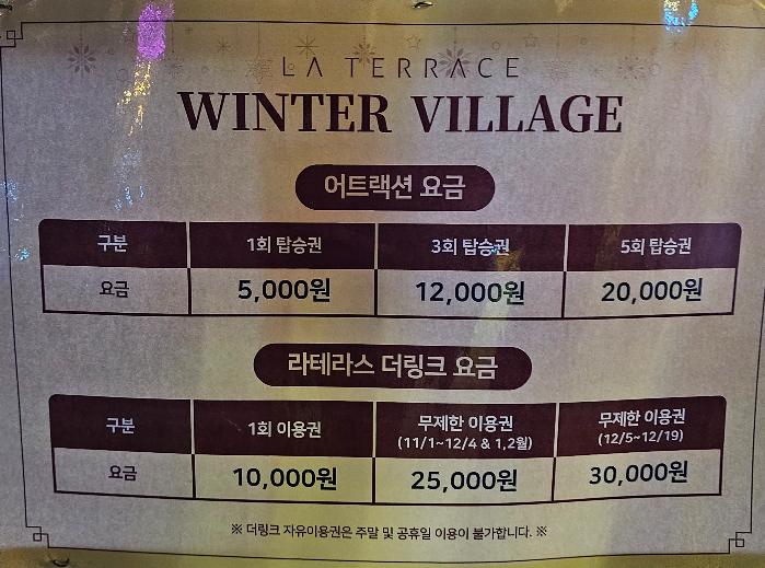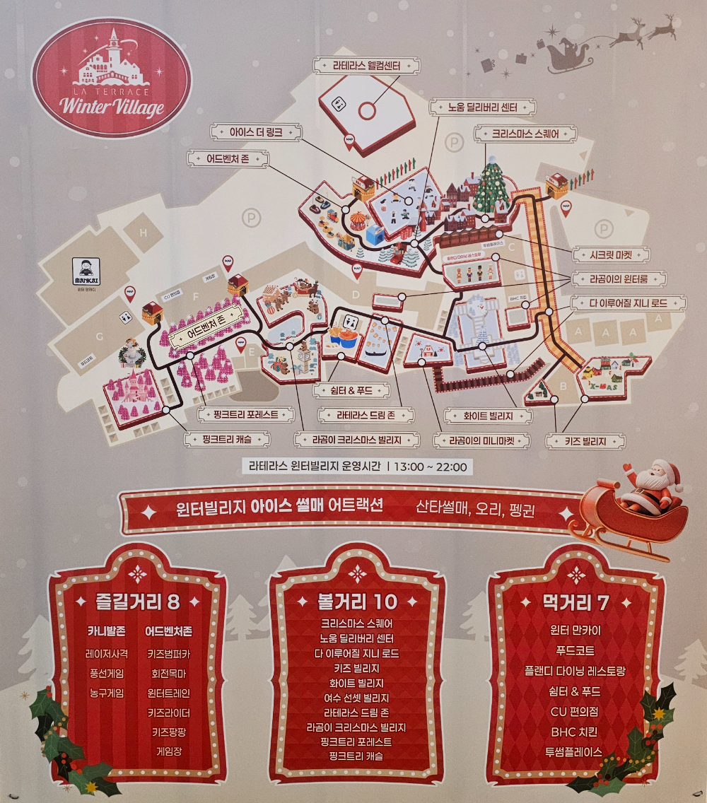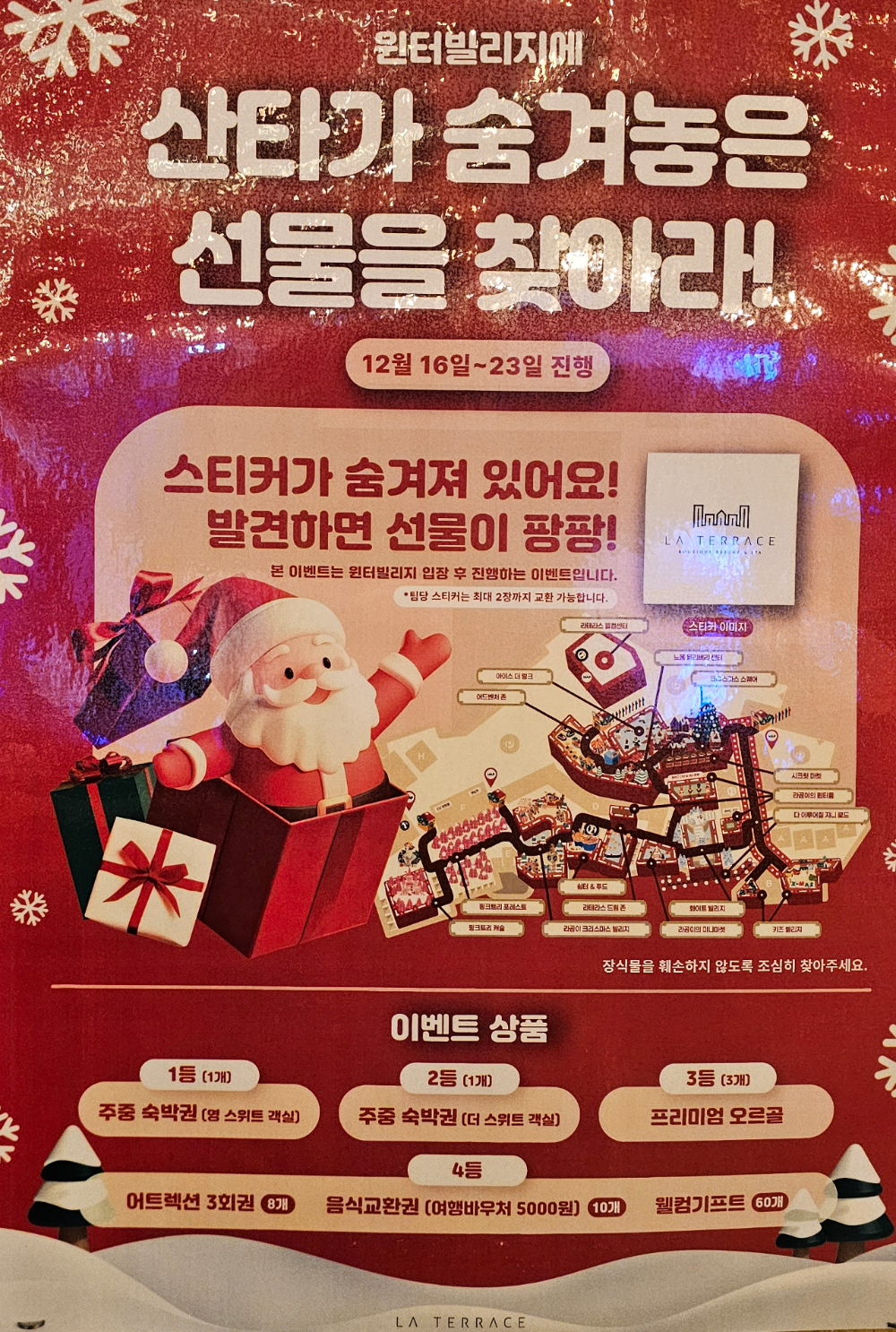제가 예상했던 것처럼 라테라스 리조트 건물 자체는 큰 규모를 자랑하지만, 윈터 빌리지 행사가 진행되는 공간은 평소 주차장으로 사용되었을 것으로 보이는 곳이라서 부지 규모가 적어 보였습니다.