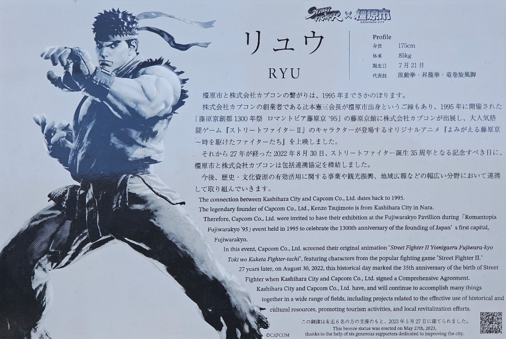 나라현 카시하라시에 캡콤의 인기 대전격투게임 '스트리트 파이터'의 캐릭터 동상들이 세워졌다는 것이었습니다.