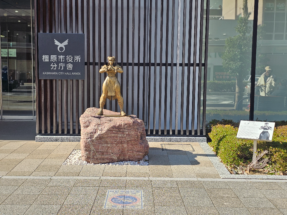 카시하라시의 스트리트 파이터 동상 투어는 야마토야기역에서 시작됩니다.