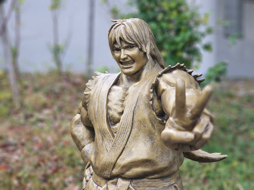 카시하라 진구는 나라현의 중요한 신사 중 하나인데, 그 주차장 입구 앞에 류의 영원한 라이벌, 켄의 동상이 서 있었습니다.