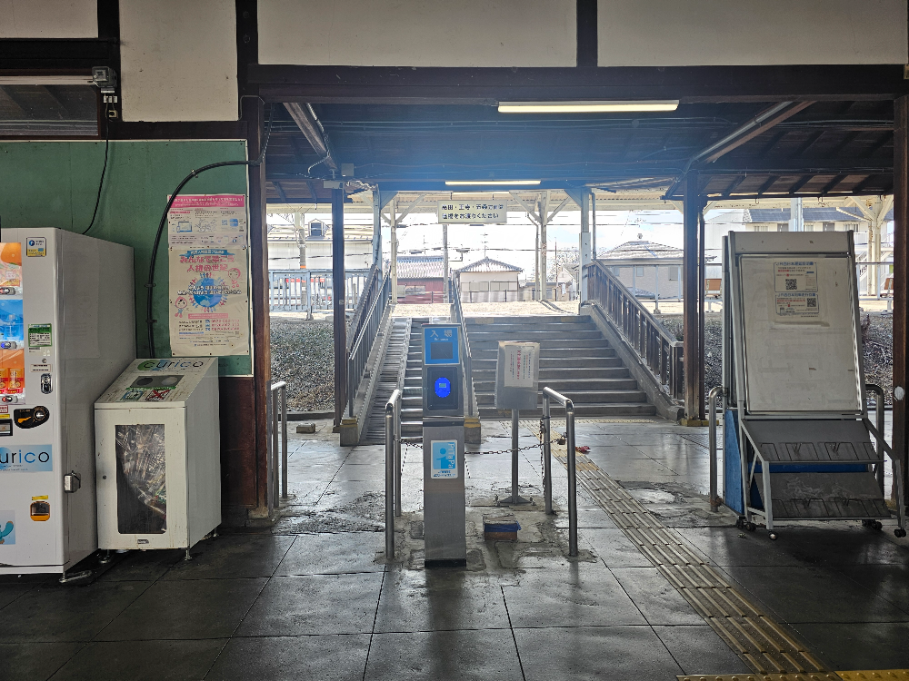 오사카의 번화함과는 완전히 다른, 평온한 지방 도시의 분위기가 역 주변을 감싸고 있었습니다.