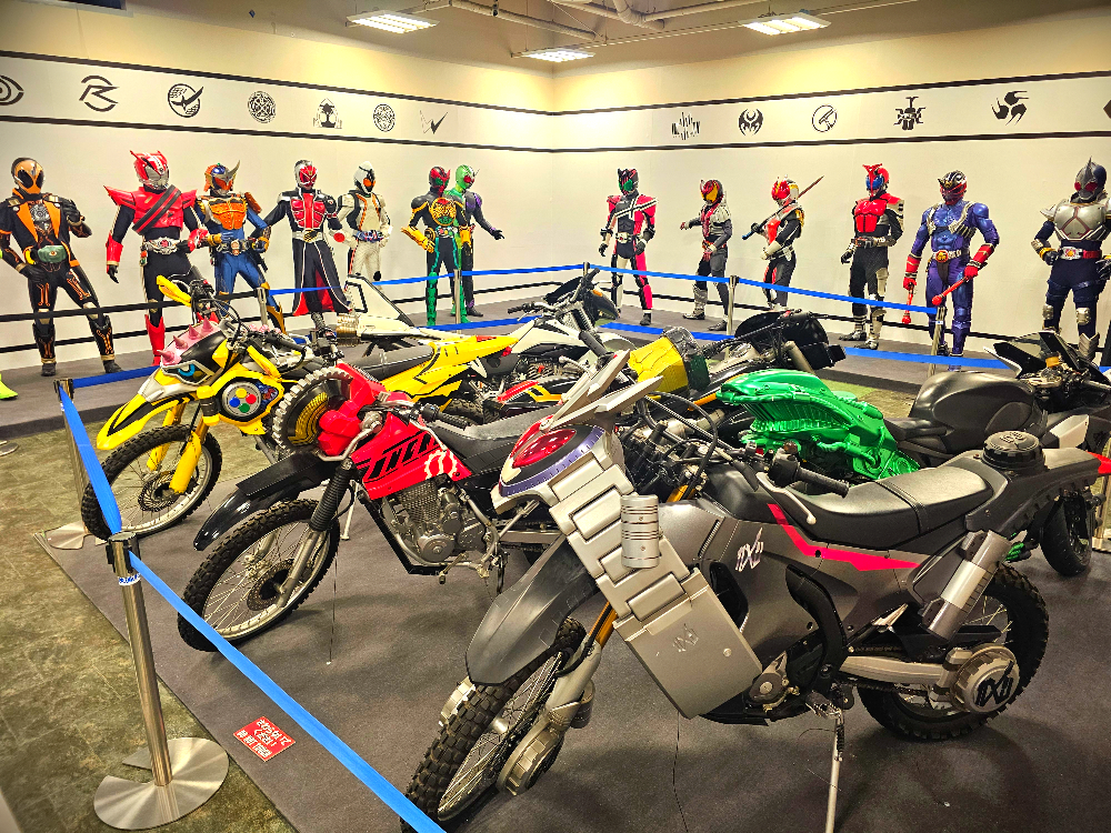가면 라이더 캐릭터들과 함께 작품 속에 등장했던 바이크들도 전시되어 있었습니다.