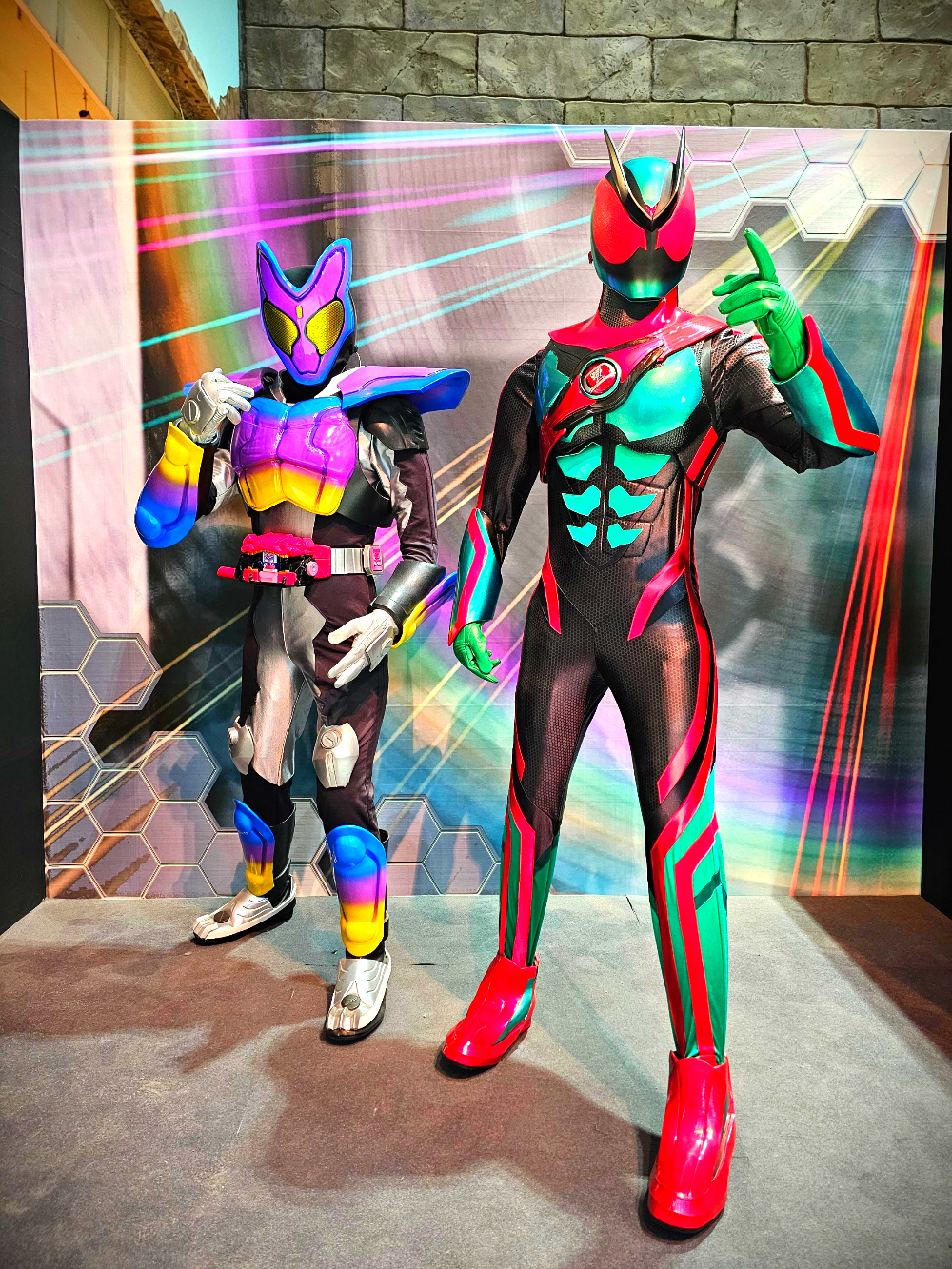디테일하게 만들어진 가면 라이더 캐릭터들의 갑옷과 마스크는 가까이서 보니 정말 정교했습니다.