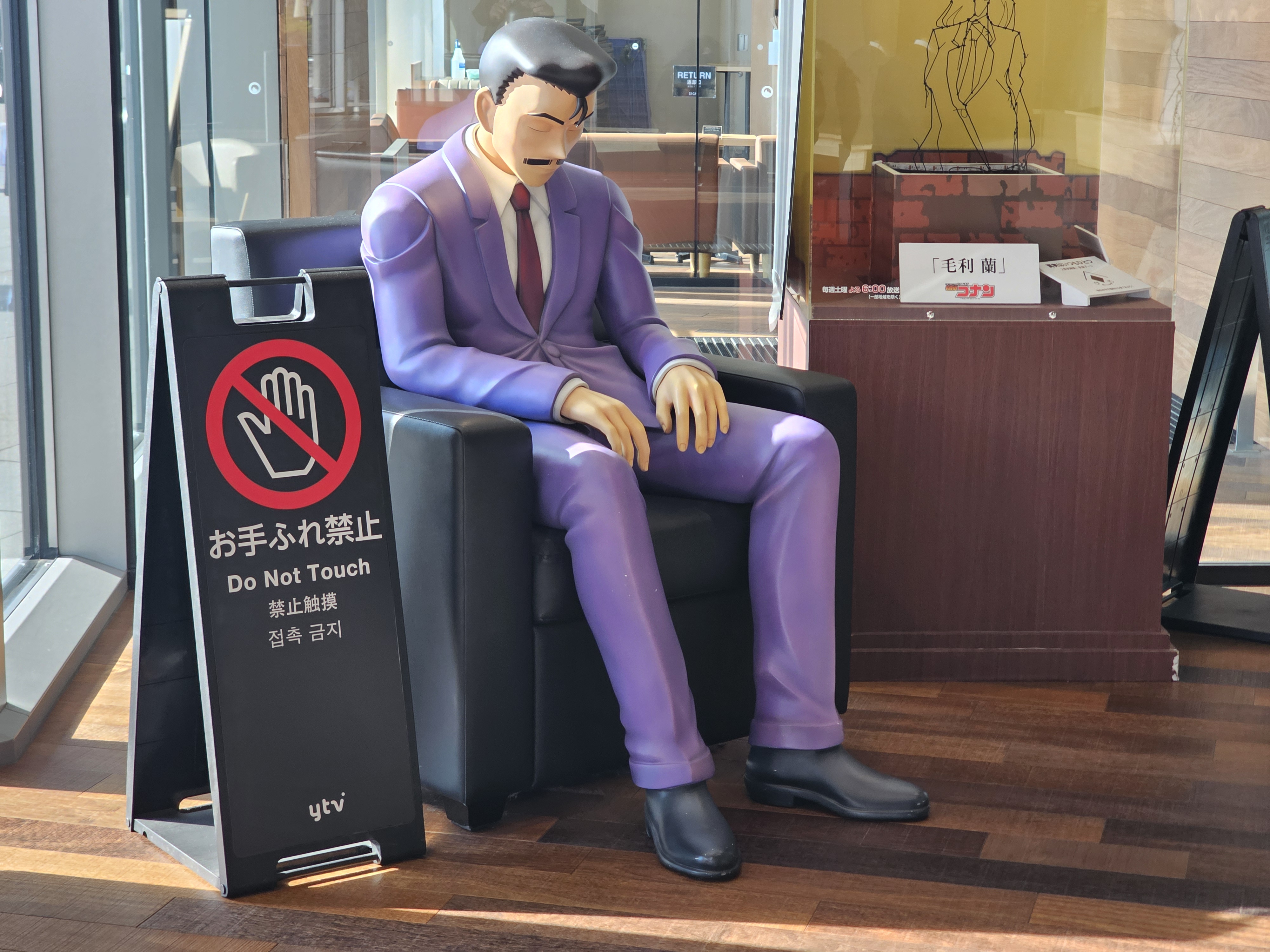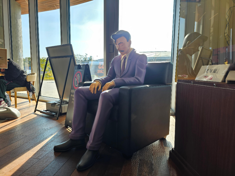 가장 먼저 눈에 띈 것은 잠자는 유명한(모리 코고로)의 실물 크기 조형물이었습니다.