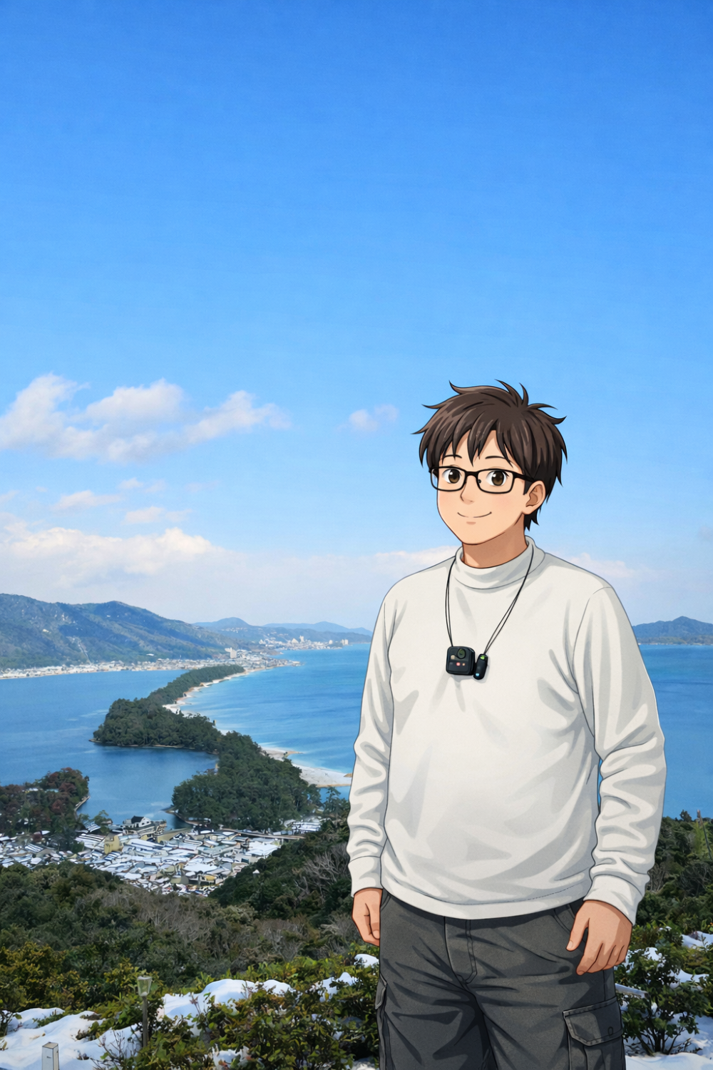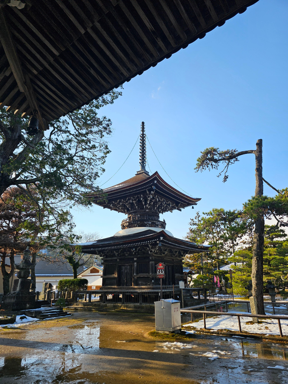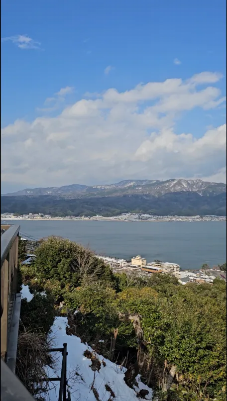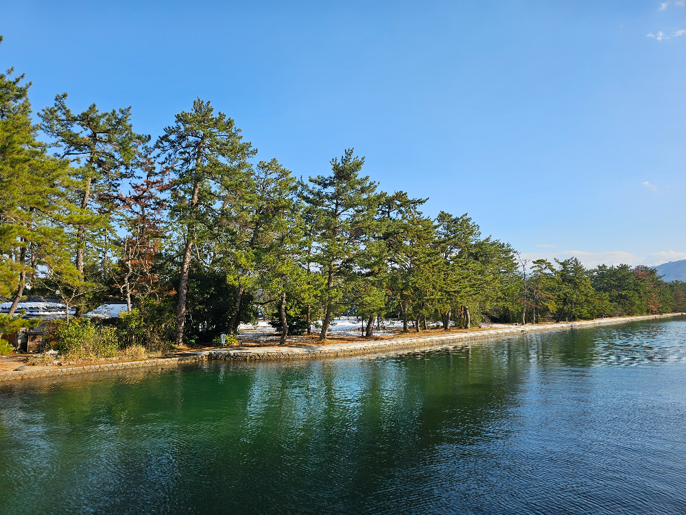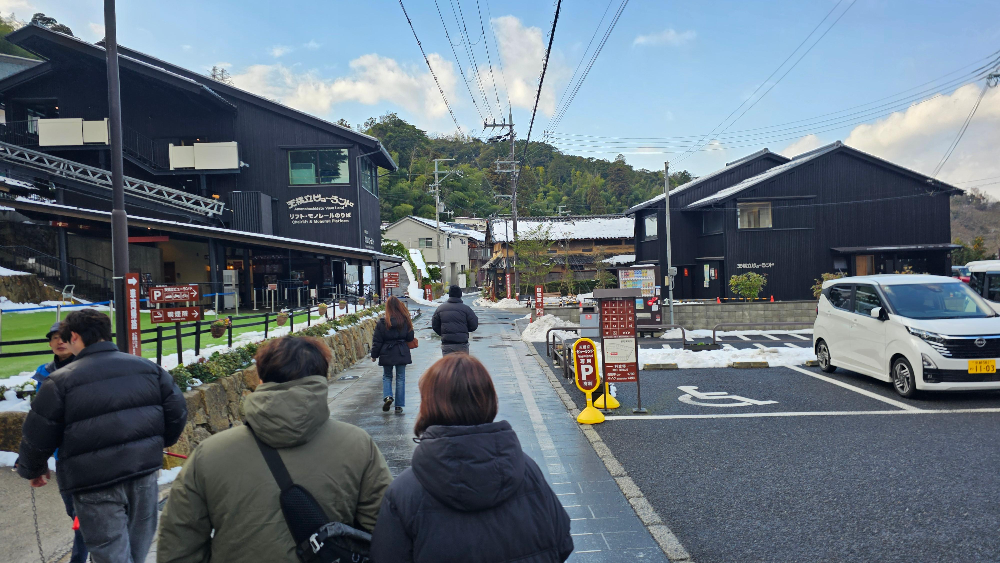 이네후나야를 떠나면서는 예보된 눈이 여전히 오지 않아 다행이었는데, 아마노하시다테에는 눈이 내리지는 않았지만 더 많은 눈이 쌓여 있는 모습을 볼 수 있었습니다.