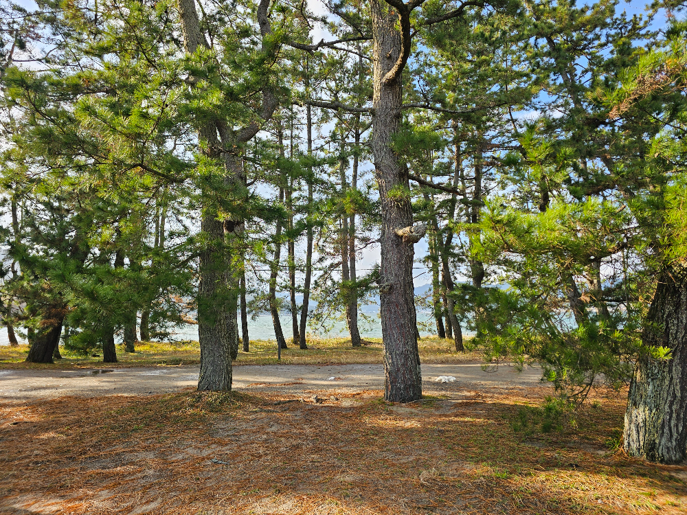 가이드님이 추천한 가장 좋은 코스는 유람선을 타고 사주 반대편 입구에 도착한 뒤, 자전거를 빌려 소나무 숲길을 질주하면서 돌아오는 방법이었습니다.