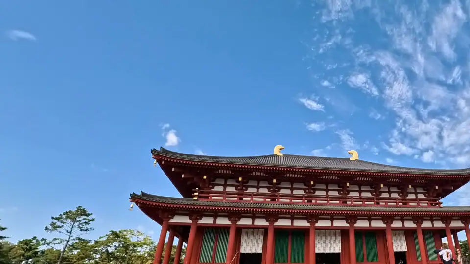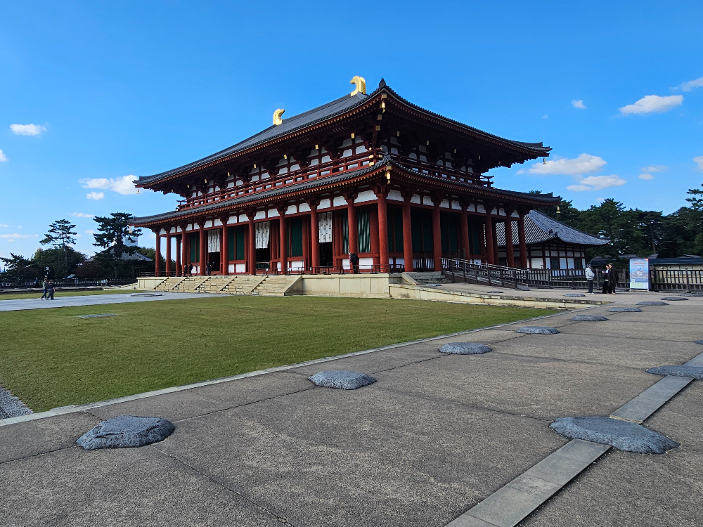 나라를 처음 찾는 대부분의 여행자들이 그렇듯 저도 그 거대한 대불을 보기 위해 나라공원 일대를 걷고 있었는데, 어느 순간 넓은 잔디 벌판 위에 우뚝 선 웅장한 목조 건물 앞에 서 있는 제 자신을 발견했습니다.