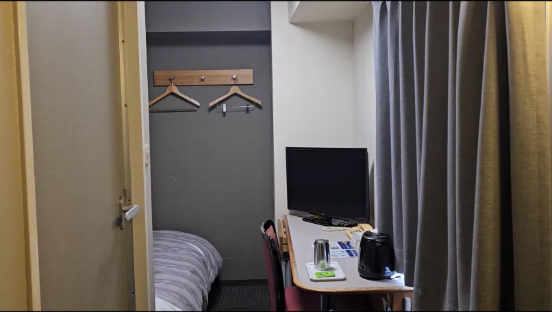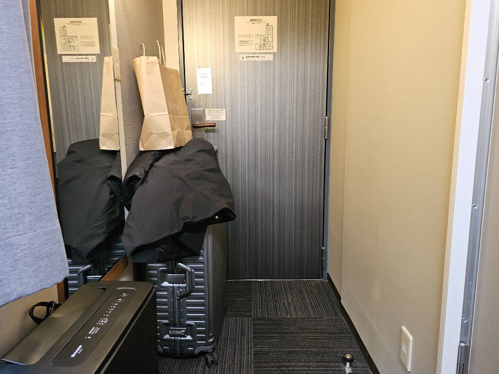 12㎡라는 면적은 오사카 비즈니스 호텔 평균 수준이긴 하지만, 28인치 이상의 대형 캐리어를 사용하는 여행자에게는 체감 불편이 꽤 클 수 있습니다. 짐이 많다면 세미 더블룸 이상을 권장합니다.