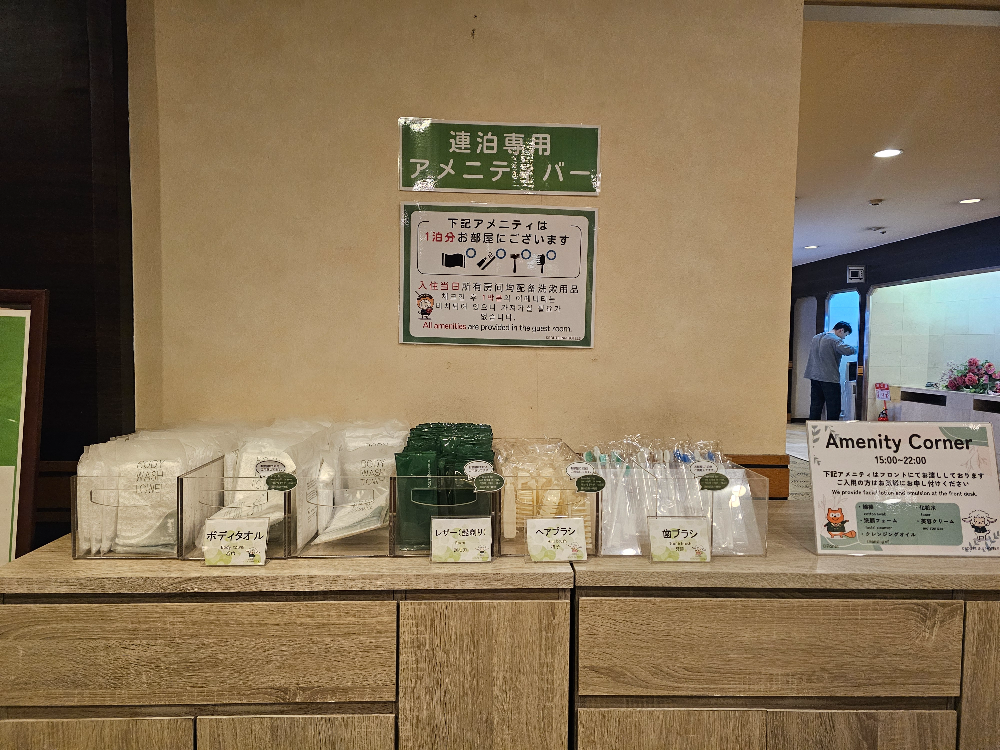 필요한 어메니티 용품을 직접 가져다 쓸 수 있는 셀프서비스 방식으로 운영됩니다.