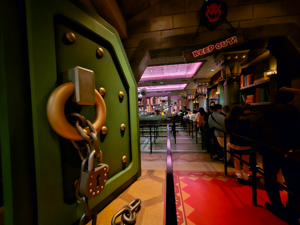 미니언 메이헴, 죠스, 요시 아일랜드의 탑승을 끝마쳤고, 우리는 마지막 어트랙션인 마리오 카트에 탑승하기 위해서 쿠파의 성에 도착했습니다.