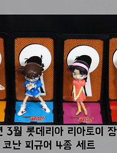 2016년 3월 롯데리아 리아토이 장난감 명탐정 코난 피규어 4종 세트 후기 우연히 롯데리아에 들렀다가 명탐정 코난 피규어 4종 판매소식을 접하게 되었다. 페이스북, 인스타그램에 롯데리아 소식을 팔로우 해놨음에도 전혀 모르고 있었던 롯데리아 명탐정 코난 피규어 판매 소식... 롯데리아는 장난감 판매 소식을 잘 알리지 않아서 수시로 매장을 들락날락 하는 수 밖에 없는 것 같다. 이번 장난감도 리아토이 셋트를 주문하면 받을 수 있으며, 개당 2,000원씩 단품 구매도 가능하다. 총 4종의 피규어가 준비되어 있고, 거치대와 뒷 면 배경도 함께 제공된다. 매장에 진열된 코난 피규어 4종. 별로 마음에 들지는 않지만 포스팅을 위해서 4종 모두 단품으로 구매했다. 별도의 패키지없이 비닐로 포장되어 있었다. 2016년 2월, 중국의 베더토이사가 제조했고, (주)한일디아이가 수입, 롯데리아가 .. 2016. 3. 2.
